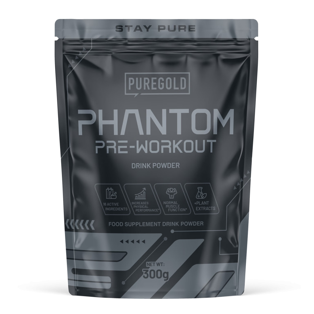 Pure Gold Phantom ízesített étrend-kiegészítő italpor hozzáadott kreatinnal, béta alaninnal, citrullinnal, aminosavakkal, növényi kivonatokkal, kalciummal és édesítőszerekkel. Hozzáadott koffeintartalommal.